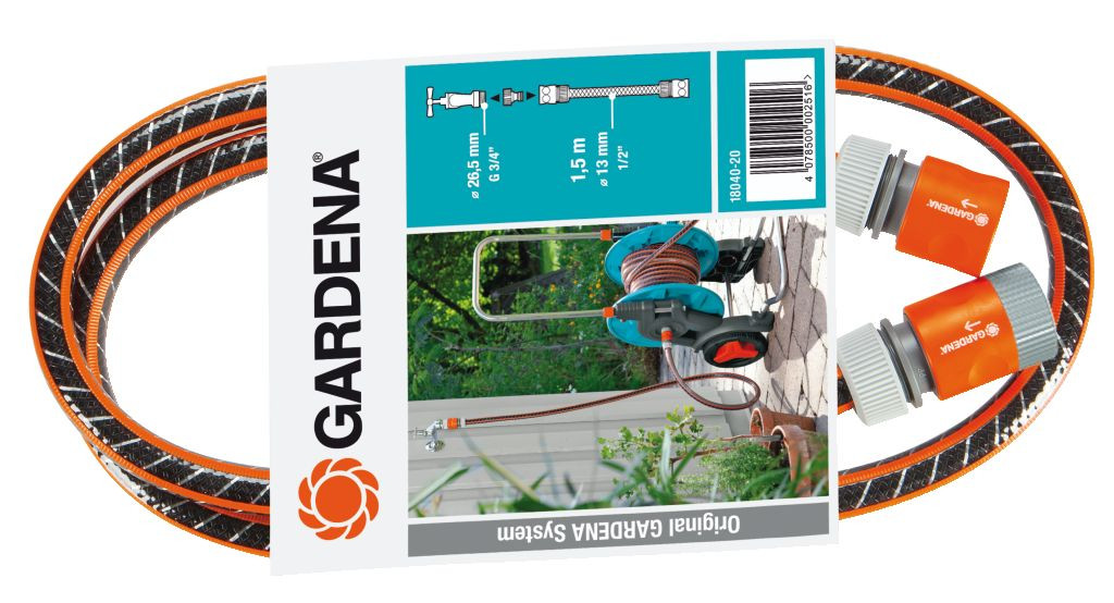 A készlet egy 1.5 m hosszú Comfort FLEX tömlőt tartalmaz 1/2" - 13 mm csőátmérővel. A tömlőn a jellegzetes Power Grip bordázat fut végig, amely tökéletes illeszkedést biztosít a rendszerelemekkel. A szett tartalmaz továbbá kész-szerelt Original GARDENA System rendszerelemeket: csapelemet és tömlőelemeket, amelyek gyors és szivárgásmentes csatlakozást biztosítanak a vízcsaphoz és a tömlő végéhez.