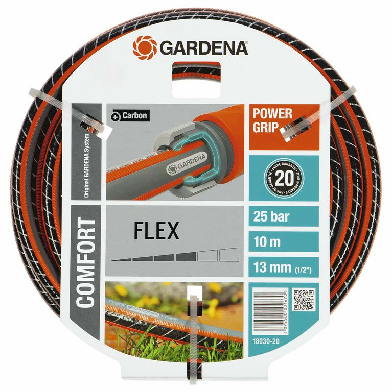 A Gardena Comfort FLEX tömlő (1/2') 10 m a GARDENA kifejezetten kényelmes használatra tervezett tömlőcsaládjának kiemelkedő tagja. A Power Grip bordázat tökéletes csatlakozást biztosít a tömlő és a tömlőelemek között, míg a szénszálas spirálszövet magas nyomásállóságot és kifogástalan formatartást garantál. Csavarodásmentes, nem csomózódik, könnyen csúsztatható, így sokkal kevesebb bosszúságot okoz a kert öntözése.