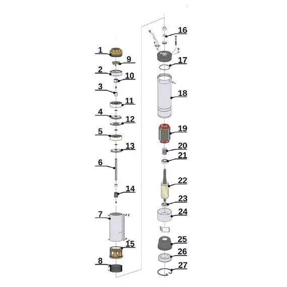 A szivattyú lebegő járókerekes kialakítása és a kopásálló prémium anyagok – sárgaréz szívó- és nyomócsatlakozás, AISI 304 rozsdamentes acél ház, tengely és rotor, valamint Noryl járókerekek és diffúzorok – gondoskodnak arról, hogy a berendezés nagy igénybevétel mellett is megbízhatóan teljesítsen. A beépített termikus védelem óvja a motort a túlmelegedéstől, ezáltal növeli a berendezés élettartamát és csökkenti a váratlan leállások kockázatát.