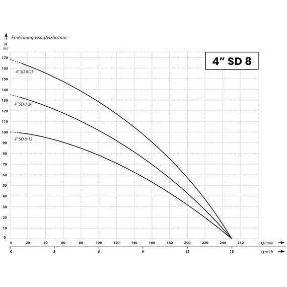 Az IBO 4" SD 8/15 400V [20m] búvárszivattyú megbízható megoldást kínál minden olyan felhasználó számára, aki stabil, hosszú távú vízellátást szeretne mélykútról. A mindössze 98 mm átmérőjű, többlépcsős mélykúti szivattyú könnyedén beépíthető legalább 115 mm belső átmérőjű kutakba, így ideális választás meglévő és új kutakhoz egyaránt. Nagy előnye a megnövelt homokállóság, amelyet a speciális „lebegő járókerekek” technológia és a gondosan megválasztott, kopásálló anyagok biztosítanak. A sárgaréz szívó- és nyomócsonk, az AISI 304 rozsdamentes acél ház, tengely és rotor, valamint a kiváló minőségű Noryl járókerekek és diffúzorok együtt gondoskodnak arról, hogy a szivattyú tartósan, magas hatásfokkal működjön még homoktartalmú víz esetén is. A készülék különösen ajánlott egy- és többlakásos családi házak, valamint mezőgazdasági gazdaságok vízellátására, illetve öntözőrendszerek (esőztető, csepegtető rendszerek) üzemeltetésére. A 400 V-os tápfeszültségű, olajhűtéses motor folyamatos üzemben is biztonságosan működik, beépített termikus védelem óvja a túlmelegedéstől, a 20 m hosszú tápkábel pedig rugalmas beépítési lehetőséget biztosít. A termékre 24 hónap gyári garancia vonatkozik, egyes kiviteleknél pedig IBO Italy motorral (3 év garanciával) is elérhető, ami tovább növeli a beruházás biztonságát.