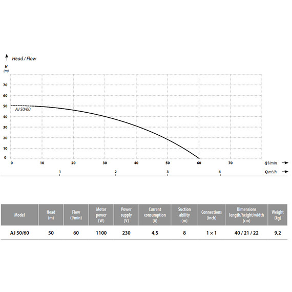 A szett lelke egy egyfokozatú, önfelszívó centrifugális kerti szivattyú, amely tiszta, hideg víz szállítására és nyomásfokozására készült. A szivattyú 230 V-os hálózati feszültségről üzemel, 1,1 kW teljesítménnyel, így háztartási és kerti alkalmazásokhoz egyaránt megbízható, folyamatos működést kínál. A jelölésben szereplő 50 m-es és 60 l-es paraméterek a rendszer teljesítménykategóriáját és kapacitását jelzik, ami alkalmassá teszi a házi vízellátás komfortos, egyenletes biztosítására.