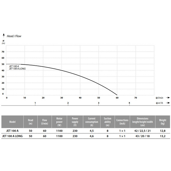 Az IBO JET 100A LONG Hidrofor előkészítéssel egy kompakt, mégis nagy teljesítményű, egyfokozatú önfelszívó centrifugálszivattyús szett, amely kifejezetten házi vízmű kialakításához készült. Előre előszerelt tartozékaival – réz 5 ágú T idommal, nyomáskapcsolóval és nyomásmérő órával – gyors és kényelmes üzembe helyezést tesz lehetővé, így rövid idő alatt élvezheti az állandó, stabil víznyomás kényelmét. Tiszta, hideg víz saját vízforrásból (például kútból) történő szivattyúzására és nyomásfokozásra lett tervezve, ezért kiváló választás lakóházak, hétvégi telkek vízellátására és öntözési feladatokra egyaránt. A rendszer tetszőlegesen bővíthető hidrofor tartállyal és flexibilis bekötőcsővel, így valóban az Ön igényeire szabott, megbízható házi vízmű hozható létre.