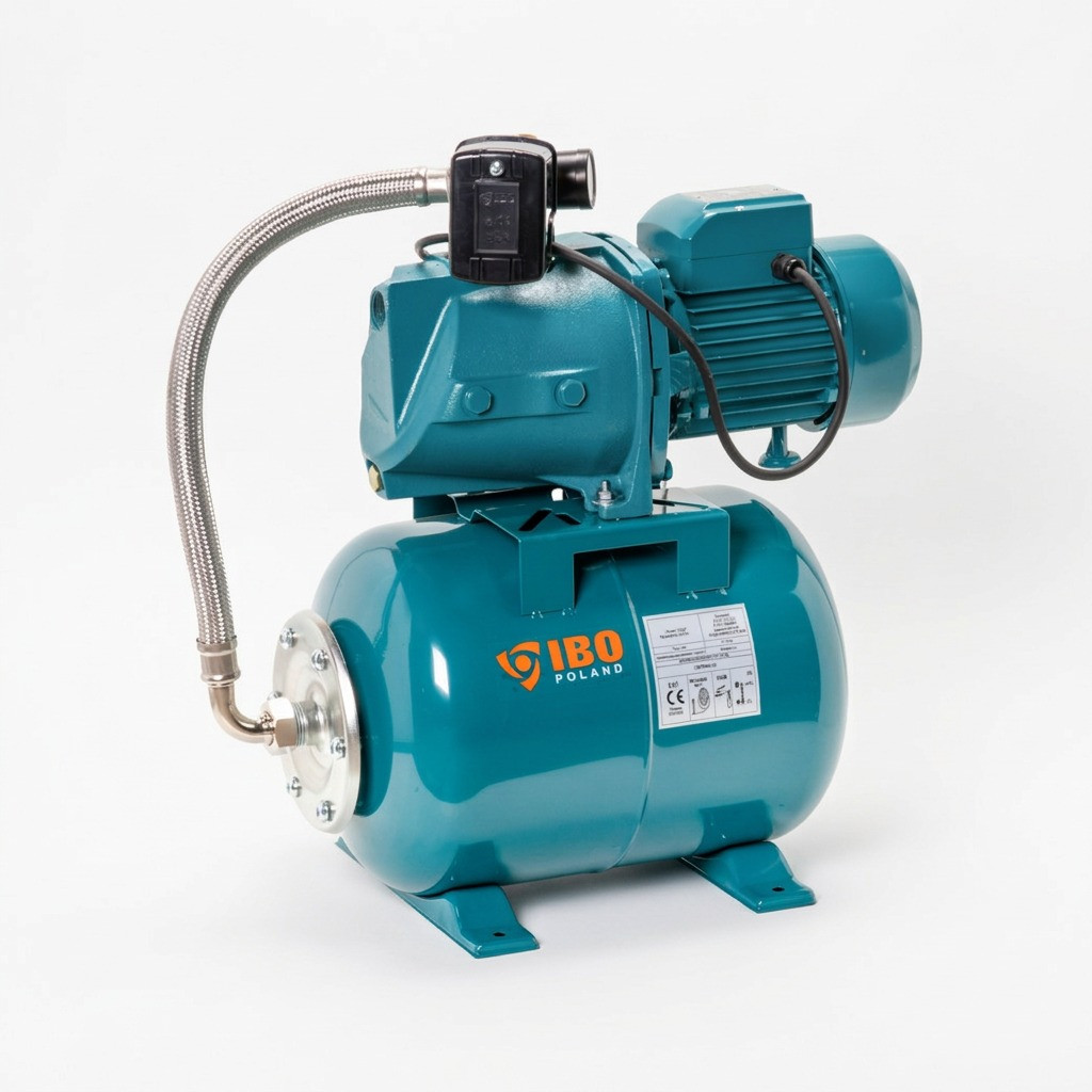 Az IBO JSW 150 - 24L házi vízmű központi eleme egy egyfokozatú, önfelszívó centrifugálszivattyú, amely Venturi-cső alkalmazásával növeli a szívóképességét, így akár 8 méteres szívómélységig is stabil üzembiztonságot nyújt. A berendezés tiszta, hideg víz saját vízforrásból való szivattyúzására és nyomásfokozásra készült, ezért kiválóan alkalmas kerti kutak, ciszternák és házi vízellátó rendszerek kiszolgálására. A vízmű része egy 24 literes nyomástartály, egy előre beszerelt nyomáskapcsoló és egy flexibilis cső, így a készülék a fő egységeket tekintve komplett, előre összeszerelt rendszerként érkezik.