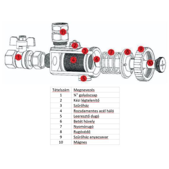 IBO Mágneses szűrő IBF-02 3/4" 30l/perc 500 mikron 3 bar 9000 Gauss