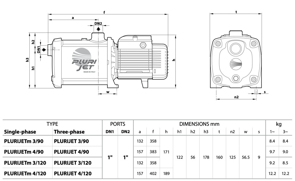 A PLURIJET 6/90 modell többfokozatú hidraulikával rendelkezik, nemesacél járókerékkel (X jelzés esetében Noryl!) járókerékkel, amely biztosítja a magas nyomás elérését alacsony energiafelhasználás mellett. A maximum 9 méteres szívómélység lehetővé teszi mélyebben fekvő vízforrások kiaknázását is. A folyadékhőmérséklet tartománya -10 °C és +60 °C között van, míg a szivattyú maximális üzemi nyomása 6 bar. A berendezés háromfázisú kivitelben IE3, egyfázisú változatban IE2 hatásfokú motorral készül, IPX4 védettséggel és F szigetelési osztállyal. A rozsdamentes acél alkatrészek hosszú élettartamot és megbízható működést garantálnak.