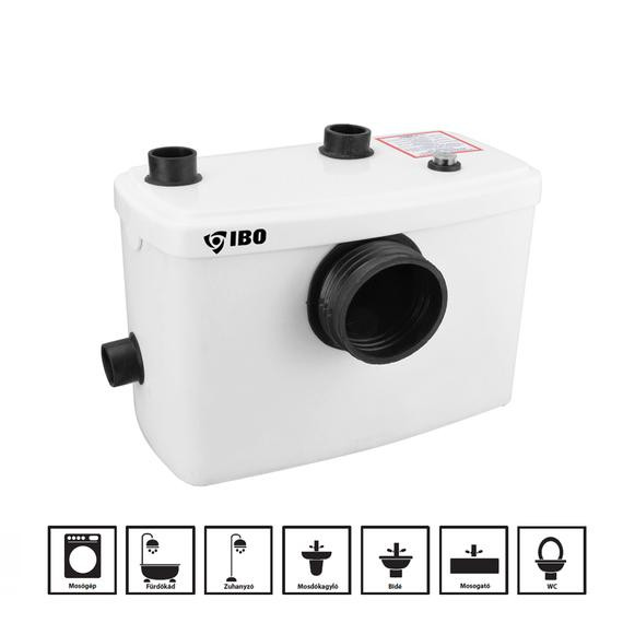 IBO SANIBO 1 szennyvízátemelő berendezés Az IBO SANIBO 1 egy kompakt, rendkívül csendes működésű szennyvízátemelő szivattyú, amelyet kifejezetten háztartási felhasználásra, WC-k, mosdók és egyéb szaniterek szennyvizének hatékony elvezetésére fejlesztettek ki. Akár a szennyvízelvezetési szint alá telepített mellékhelyiségekhez is ideális megoldást kínál, mivel automatikusan működik és nagy teljesítményű vágórendszerrel van felszerelve. A készülék egyik legnagyobb előnye a megbízható teljesítmény 7 méter függőleges és akár 70 méter vízszintes emelőmagasságig, így nincs szükség gravitációs elvezetésre. IBO SANIBO 1 műszaki információk Az IBO SANIBO 1 szivattyú 0,6 kW teljesítményű motorral rendelkezik, amely percenként akár 120 liter szennyvíz szállítására is képes. A szivattyú három bemeneti nyílással van ellátva: egy 100 mm-es fő bemenettel WC-csatlakozáshoz és két 40 mm-es nyílással zuhany, mosdó vagy mosógép bekötéséhez. A beépített vágórendszer hatékonyan aprítja fel a szilárd szennyeződéseket, ezáltal biztosítva a zavartalan működést. A készülék emelőmagassága eléri a 7 métert függőlegesen és akár 70–90 métert vízszintesen, így különösen hasznos pincében, vagy a szennyvízelvezető csatorna alatt elhelyezkedő fürdőszobák esetében. A szivattyú képes akár 90°C hőmérsékletű folyadékot is kezelni 2 percig, ciklusideje pedig körülbelül 8 másodperc. Méretei: 510 × 320 × 220 mm, tömege 8,5 kg. Mi található van a csomagban? Átemelő szivattyú vágórendszerrel, 40mm-es végzáró dugó (2db) 100 mm-es végzáró dugó, Visszacsapó szelep (2db), Acél szorító bilincsek. IBO SANIBO 1 alkalmazása Az IBO SANIBO 1 ideális választás olyan háztartásokban, ahol a fürdőszobai berendezések (WC, kézmosó, zuhanyzó, kád, mosógép vagy mosogatógép) nem csatlakoztathatók közvetlenül a gravitációs csatornahálózathoz. Kifejezetten ajánlott alagsorban, pincehelyiségekben vagy utólag kialakított mellékhelyiségekben történő használatra, ahol a szennyvíz elvezetése nehezen vagy egyáltalán nem lenne megoldható hagyományos módon. A csendes működésének köszönhetően lakóövezeti környezetben is észrevétlen marad, míg az automatikus indítás egyszerűvé és kényelmessé teszi a használatát. A gyártóról Az IBO márka a lengyel Dambat cégcsoport terméke, amely több mint 20 éves tapasztalattal rendelkezik a szivattyútechnológia területén. Termékei a megbízhatóságot, a hosszú élettartamot és a felhasználóbarát megoldásokat képviselik, legyen szó háztartási vagy ipari alkalmazásokról. A SANIBO termékcsalád az IBO szennyvízszivattyúinak egyik legsikeresebb sorozata, amely modern technológiával és praktikus kialakítással nyújt hatékony megoldást a háztartási szennyvízkezelésben.