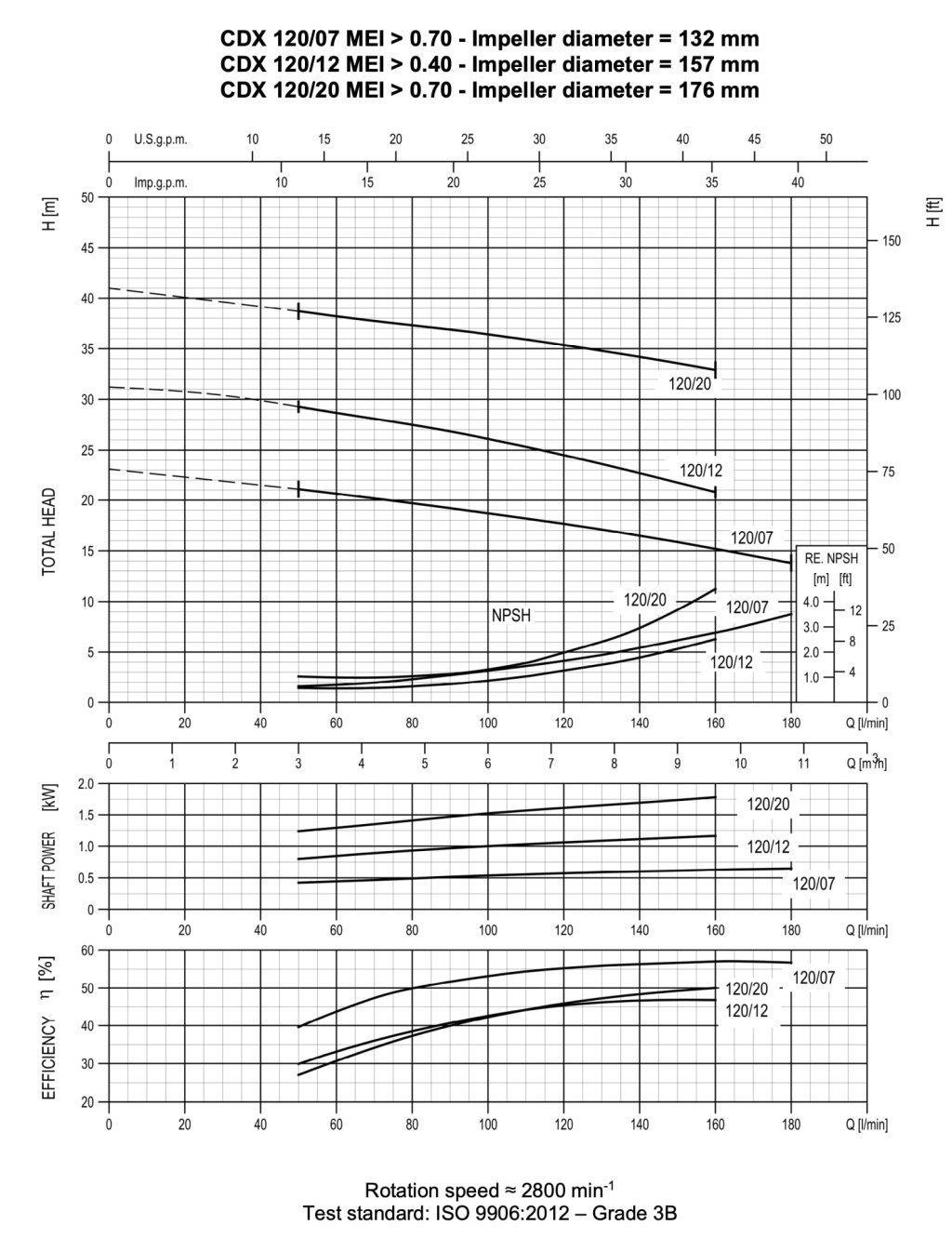 A szivattyú IP55-ös védettségű, F szigetelési osztályú 2 pólusú aszinkron motorral van szerelve, amely önhűtő kialakítású. Egy- és háromfázisú kivitelben is elérhető (230 vagy 400V). A megengedett maximális üzemi nyomás 8 bar, míg a szállított közeg hőmérséklete -5°C és akár +90°C között lehet (a tömítéstől függően).
