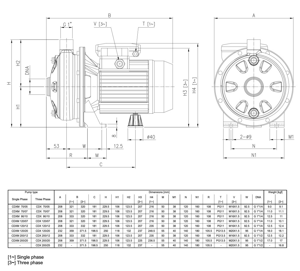 A szivattyú IP55-ös védettségű, F szigetelési osztályú 2 pólusú aszinkron motorral van szerelve, amely önhűtő kialakítású. Egy- és háromfázisú kivitelben is elérhető (230 vagy 400V). A megengedett maximális üzemi nyomás 8 bar, míg a szállított közeg hőmérséklete -5°C és akár +90°C között lehet (a tömítéstől függően).