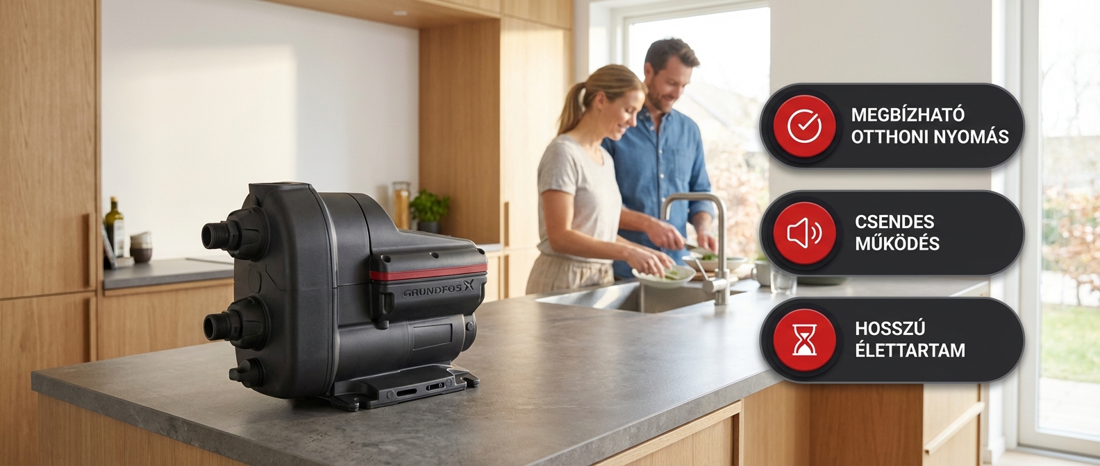 Ez a berendezés egy prémium kategóriás, csúcstechnológiát képviselő, nagyon csendes üzemű, frekvenciaváltós házi vízellátó berendezés.