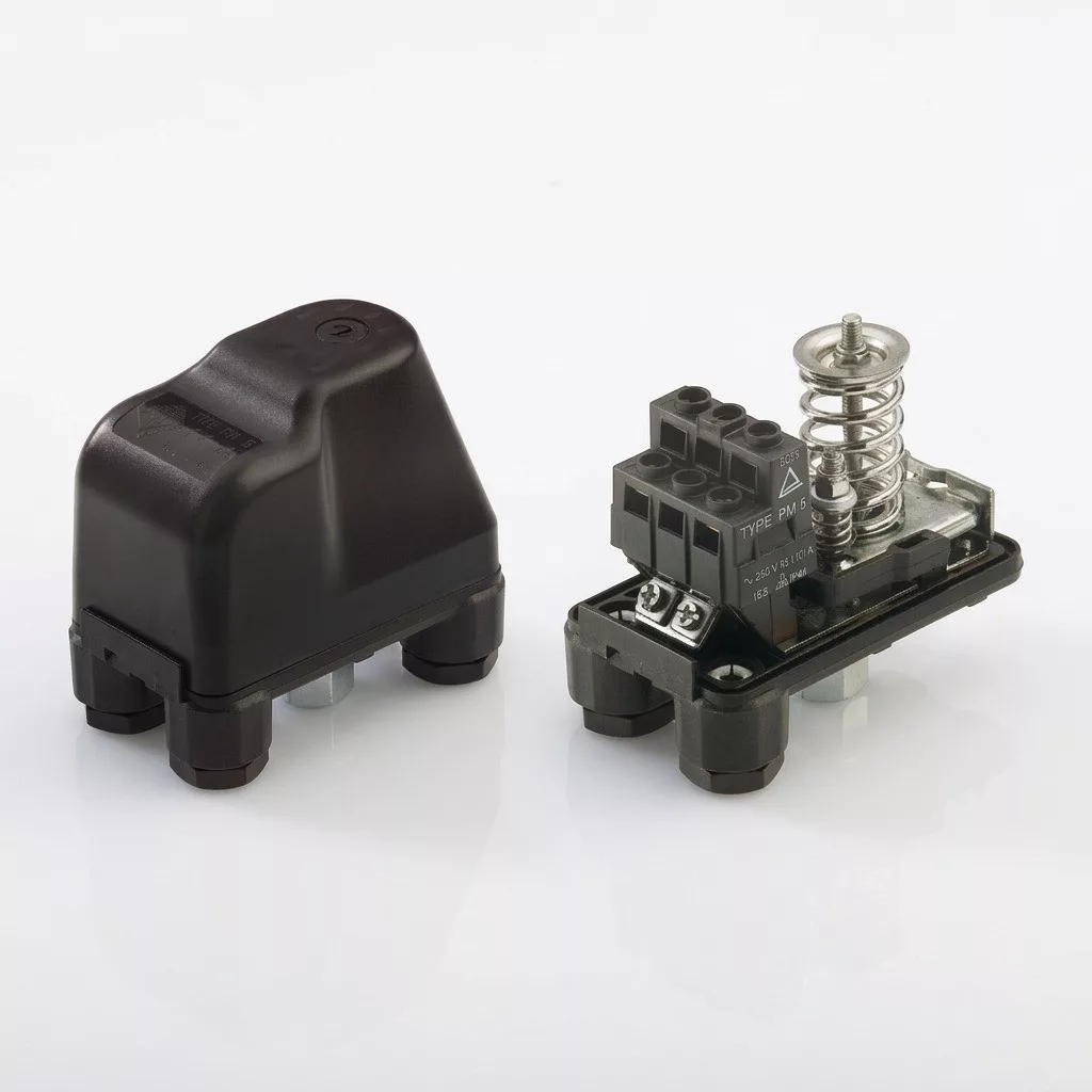 A PM kapcsolóknak két változata van, a PM5 és a PM12 nyomáskapcsoló. A kettő közötti különbség a nyomástartomány, amely a PM5 esetén 1-5 bar, míg a PM12 esetén 2-12 bar között állítható. A nyomáskapcsoló tökéletes működéséhez szükséges a rendszerbe hidrofortartály a nyomáskiegyenlítése érdekében. A készülék képes az előre beállított értéken bekapcsolni, nyomáseséskor és kikapcsolni, nyomásnövekedéskor a szivattyút. A termék egy (PM) és háromfázisú (PT) változatban is kapható!