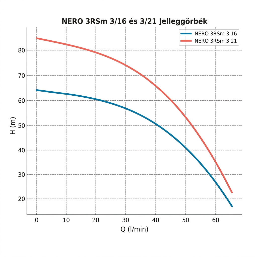 A NERO 3RSm 3/16 egy 3"-os csőbúvár szivattyú, amely a NERO Pumps RS család megbízható tagja. 0.55 kW-os egyfázisú motorjával akár 63 m emelőmagasságot és akár 64 l/perc vízhozamot képes biztosítani. A rendszer akkor működik igazán hatékonyan, ha a szivattyú mellé a feladathoz illeszkedő vezérlőt vagy frekvenciaváltót választunk – ezek biztosítják a finomhangolást, a stabil nyomást, és jelentősen növelik az élettartamot. 30m gyári kábellel szállítjuk.