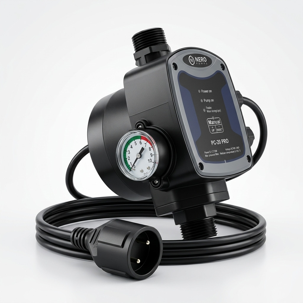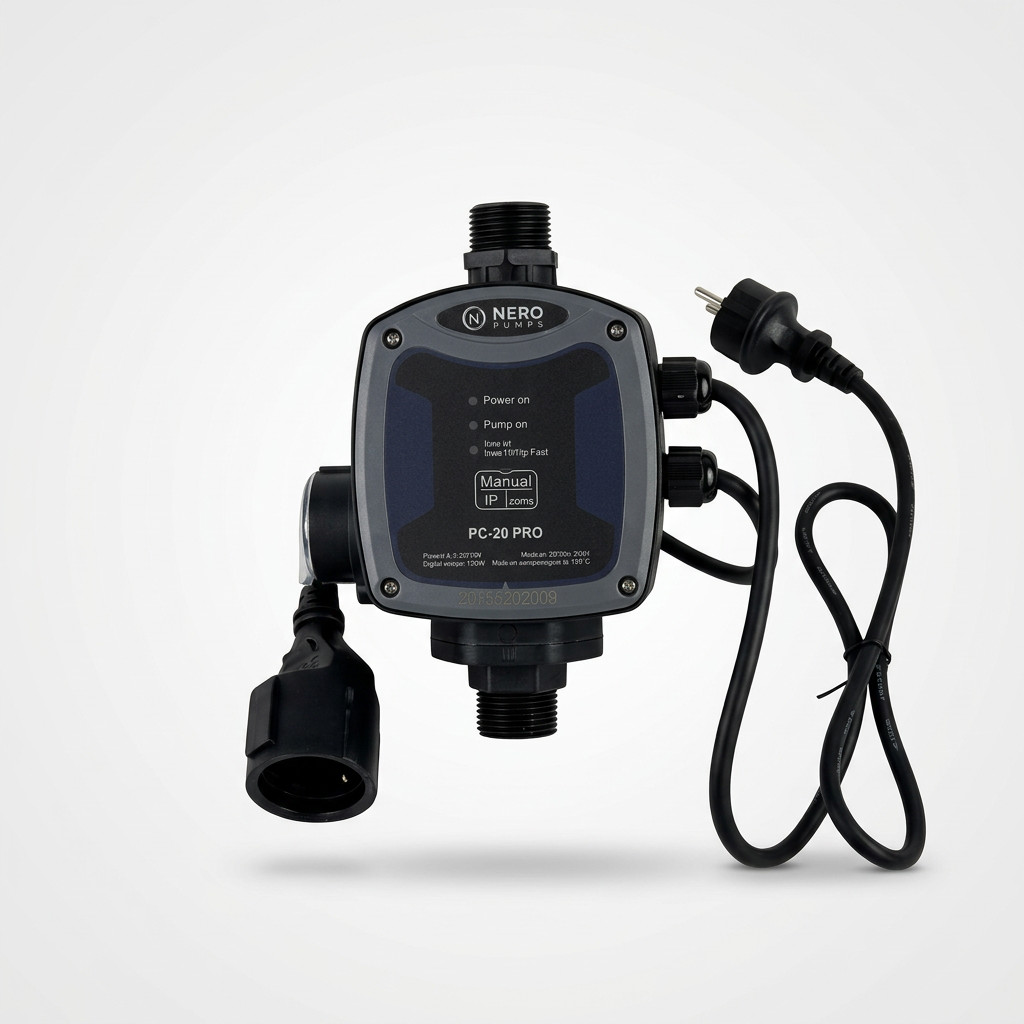 A NERO PC-20 PRO áramláskapcsoló automatikus, biztonságos vezérlést biztosít háztartási és ipari szivattyúkhoz. Az állítható bekapcsolási nyomásnak köszönhetően rugalmasan illeszthető bármilyen vízellátó rendszerhez. Hideg- és melegvizes rendszerekben is használható. A 200 másodperces szárazonfutás-késleltetés megkönnyíti a légtelenítést. Mérőórával, dugaljjal és dugvillával szerelt, azonnal telepíthető – sem villanyszerelő, sem további alkatrész nem szükséges az üzembe helyezéshez.