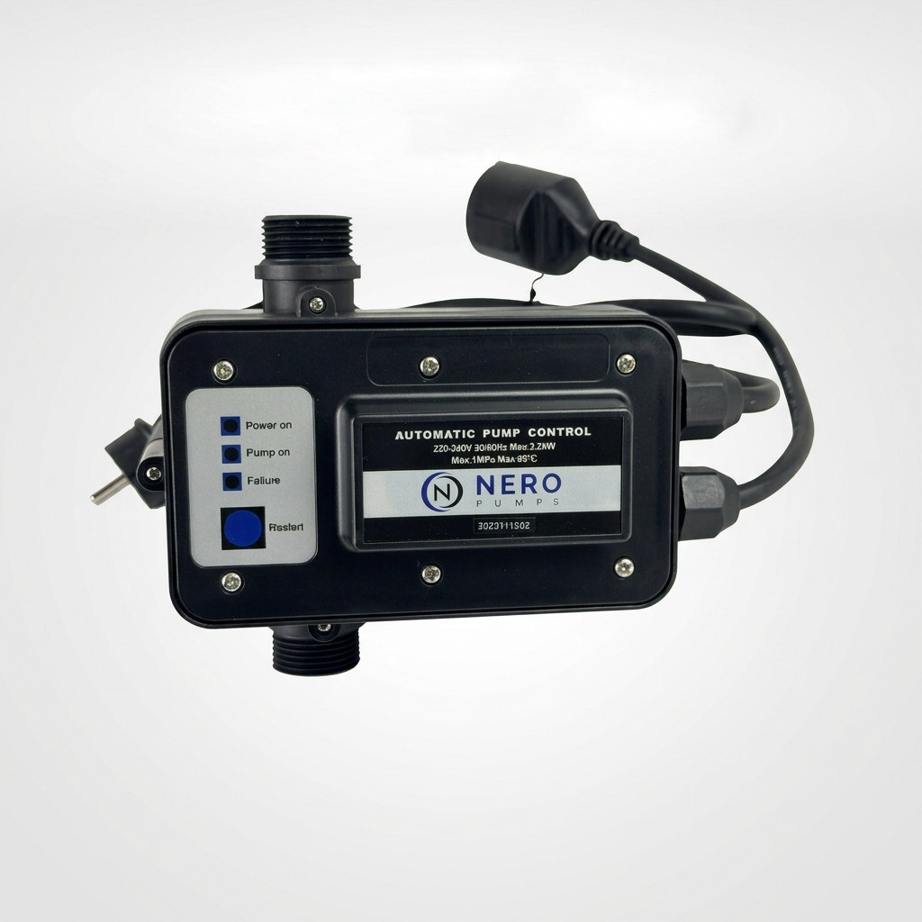 A NERO SC-16A áramlásvezérlő áramláskapcsoló automatika biztosítja a szivattyú automatikus indítását és leállítását a vízfogyasztás függvényében. A beépített szárazonfutás védelem megakadályozza a szivattyú károsodását vízhiány esetén. Kompakt kialakítása és egyszerű telepíthetősége révén gyorsan üzembe helyezhető bármilyen szivattyúrendszerrel.
