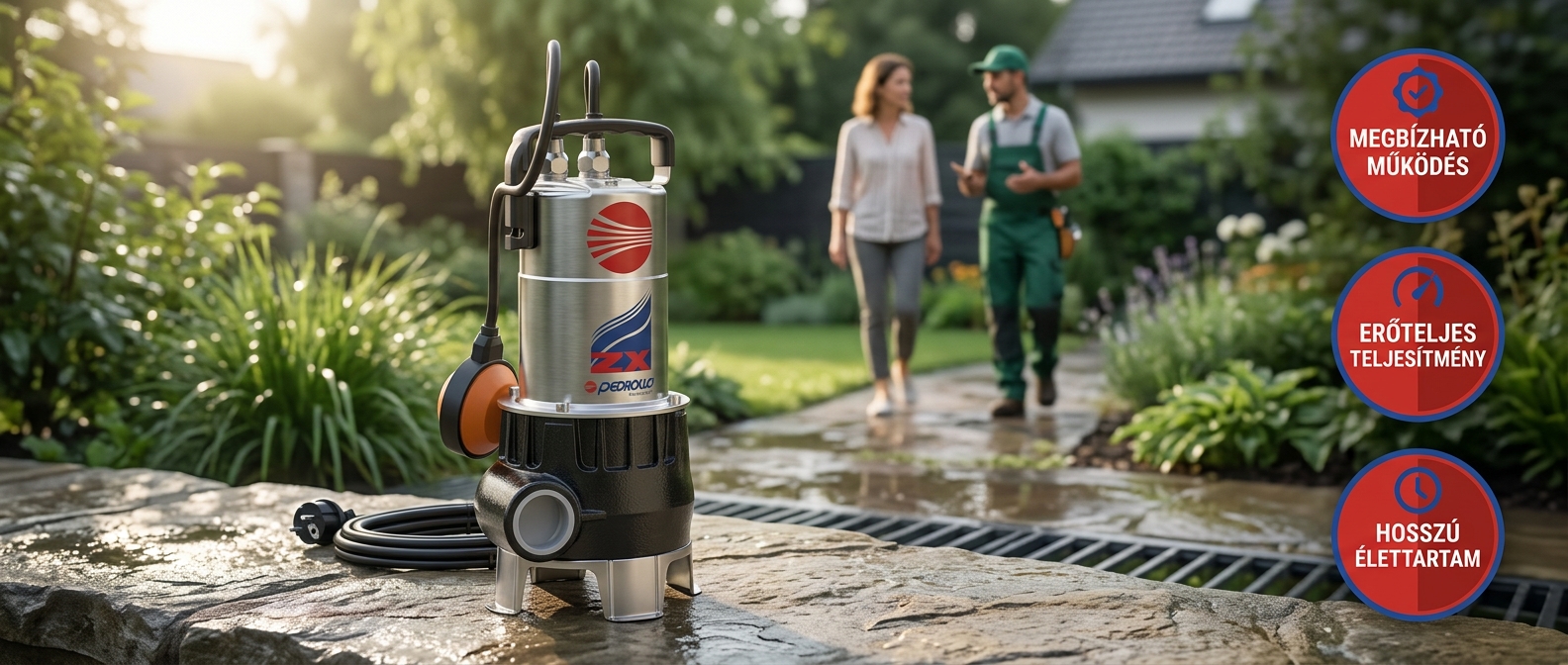 A Pedrollo ZXm 1A/40 - 5m szennyvíz szivattyú egy merülőmotoros, elektromos meghajtású, Vortex járókerekes igen szennyezett, fekáliás víz szállítására is alkalmas szivattyú.Teljesítménye 400 liter/percig (24 m3/h-ig), emelőmagassága pedig 11 méterig terjedhet.Folyadékhőmérséklet tűrése max. 40 °C. Ürítési szintje a fenéktől számítva 50 mm. A készülék folyamatos (S1) működésű.A szivattyú háza, csavarmentes csőcsatlakozással ellátott nyomóoldali burkolata öntvényből, Vortex rendszerű, örvénykeltő járókereke üvegszállal megerősített technopolimerből, motortengelye pedig rozsdamentes acélból készült.Motorja egy robusztus szerkezet, mely igen csendes üzemű és bírja a tartós üzemelést. Beépített kondenzátorral és hővédelemmel rendelkezik. Jelenleg csak egyfázisú verzióban elérhető.A készülék úszókapcsolóval ellátott, mely óv a szárazonfutástól és irányítja a ki- és bekapcsolást. Ez azt jelenti, hogy felügyelet nélkül automatikusan tud üzemelni a szivattyú.Típus függvényében 5 vagy 10 méteres elektromos kábel jár a berendezéshez.
