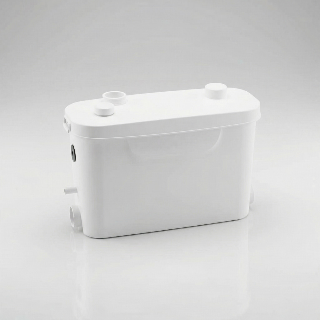A készülék két darab oldalsó alsó DN40 csatlakozással rendelkezik, belső visszacsapó szeleppel ellátva, valamint egy felső DN csatlakozóval. A kondenzátum bekötő vagy leeresztő csatlakozó további rugalmasságot biztosít. A külső nyomóági visszacsapó DN32/40 méretben biztosítja a visszaáramlás elleni védelmet. A modell nem rendelkezik WC csatlakozással, így kizárólag szürke szennyvíz kezelésére alkalmas.