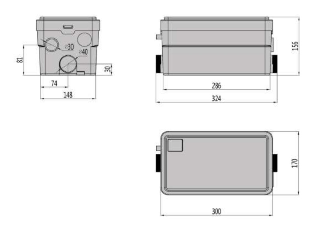 A berendezés kényszerkapcsolású talpérintkezős automatikus indítással működik, amely 6,5 cm-es bekapcsolási és 3 cm-es kikapcsolási szinttel biztosítja az optimális üzemet. A beépített motor a víztéren belül helyezkedik el, teljesítménye 250 W (P1), 2 A, tápellátása 1x230V / 50 Hz. Maximális térfogatárama 100 liter/perc, így nagyobb vízmennyiség gyors átemelésére is alkalmas. A közeg megengedett hőmérséklete +1 °C és +40 °C között van. A nyomócsonk DN23/28/32 méretű, az oldalsó hozzáfolyás DN40 csatlakozással rendelkezik, a kondenzátum külön bekötési ponton csatlakoztatható. Az oldalsó rákötési csonk magassága 30 mm.