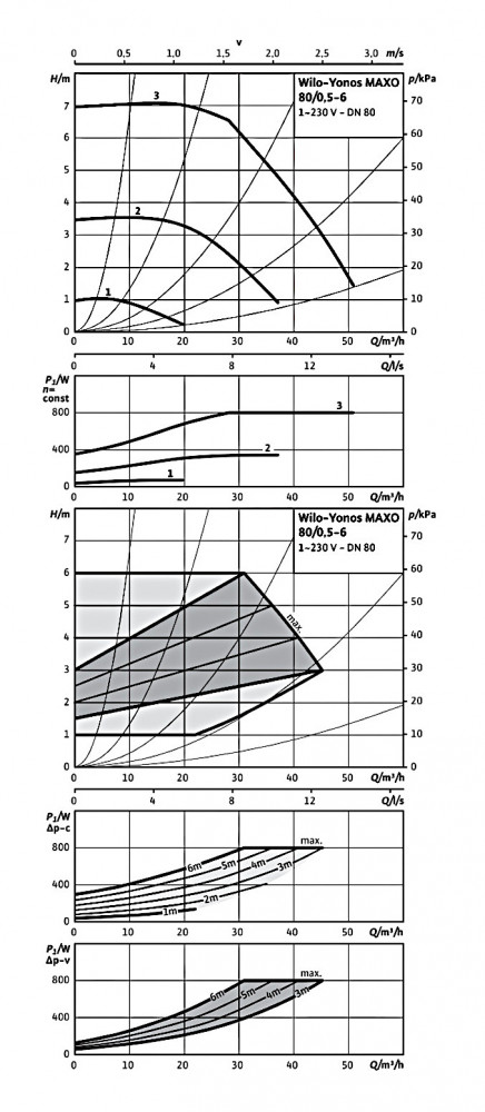 A WILO Yonos MAXO 80/0,5-6 PN6 nedvestengelyű fűtési szivattyú hűtési és fűtési rendszerekbe egyaránt alkalmazható. Csőcsatlakzása: karimásA szivattyú előre felprogramozott működési módokkal rendelkezik melyek közül az üzemeltetés módjának és a hűtési vagy fűtési rendszer függvényében kell kiválasztani a megfelelőt. Ez a fűtési szivattyún (a motorfedélen) egy LED kijelző került elhelyezésre, melynek segítségével a készülék beállítható, illetve ezen keresztül kapjuk meg a különéle üzemi és hibajelzéseket is. Emellett a motorfedélen egy üzemi állpotjelző fény is található, ez szintén a különféle állapotok kijelzésére és zavarjelzésre szolgál.A WILO Yonos MAXO 80/0,5-6 PN6 szivattyú maniálisan és automatikusan egyaránt üzemeltethető.Kézi üzemeltetés esetén választhatjuk például az előd WILO TOP-S típushoz hasonlóan fordulatszám fokozatok közül. De lehetőségünk nyílik az emelőmagasság kézi beállítáásra is, ha éppen erre van szükségünk.Automatikus üzemeltetés esetén a szivattyú képes a teljesen automatikusan történő fokozatmentes fordulatszám választásra.Mivel a készülék fordulatszáma eleve váltoutatható ezért képes a lágyindításra. A szivattyúban beépített motorvédelem található melynek segítségével a közvetlenül vezérelt motor túlmelegedése elkerülhető. Emellett az ún blokkolás mentesítő funkciónak köszönhetően elkerülhető a szivattyú megszorulása így elkerülthetők a kellemetlen meglepetések.